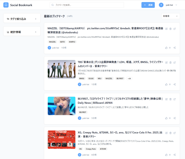 今回はReplitで以前から作りたかったオリジナルのソーシャルブックマークを作ってみました。仕様はこんな感じ。