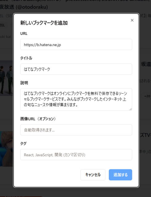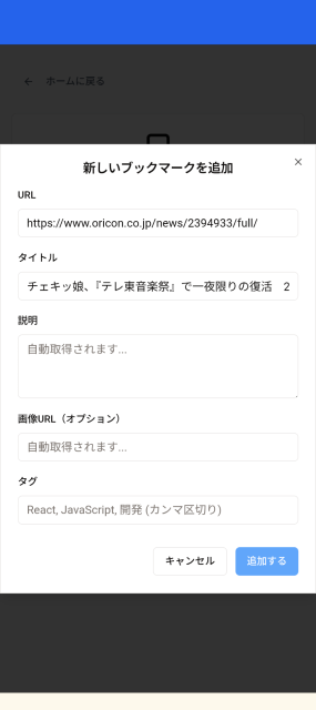追加時はURL入れるだけでタイトルや概要、画像も取得してくれます。