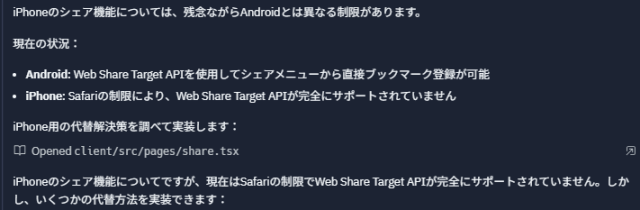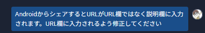 こんな感じで仕様を修正しつつ、一通り完成したタイミングでAndroidからのシェア機能の実装を確認。