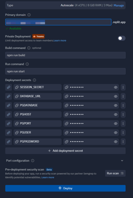 最後にURLを決めてから「Deploy」でいよいよインターネット公開。