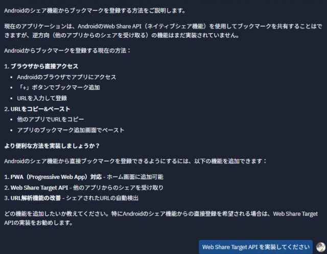 Androidとは仕様が違うので、ということでブックマークレットやiOSのショートカットアプリで登録する機能を実装してくれました。